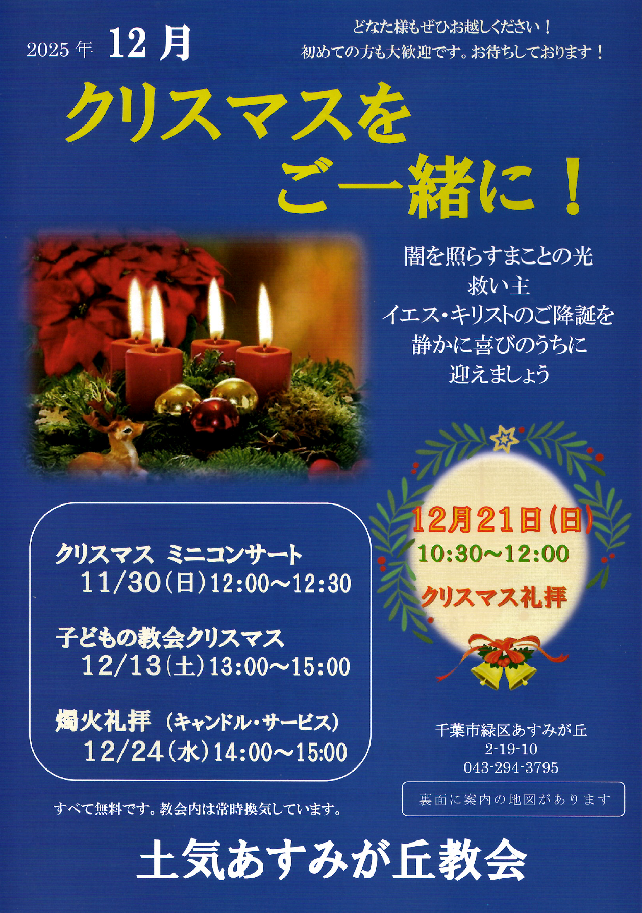 方はご連絡頂けると、教会駐車場を確保いたします。